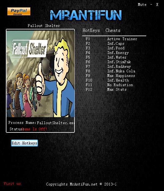 F1ActiveTrainer激活修改器F2Inf.Caps無限瓶蓋