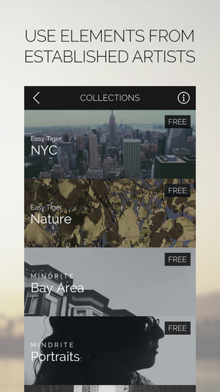 1:添加背景和前景。選擇保存到你的照片庫(kù)視頻剪輯或圖像,或看看我們的藝術(shù)家收藏包2:刷卡預(yù)覽和選擇最佳的混合模式為您的項(xiàng)目
