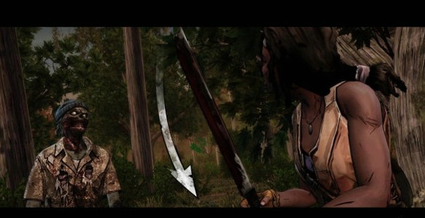 行尸走肉:米瓊恩在剛開始的畫面氛圍相當緊張,當然,這僅僅是包括游戲內(nèi)幾乎大部分的操作練習(xí),在游戲的后段,畫面就較少有這么緊張的氛圍了,常用的鍵位反應(yīng)操作以黑底灰鍵為主,而相關(guān)方向操作以單白為底。在游戲的一些時間里,都需要對當前對話做出選擇,選擇則以白字為主,人物與人物之間的對話用不同顏色標識加以區(qū)分。