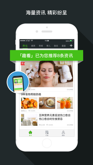 趣看是一款創(chuàng)新模式的生活資訊閱讀應(yīng)用,集合生活、娛樂(lè)、社會(huì)、養(yǎng)生、時(shí)尚等海量新鮮內(nèi)容呈現(xiàn)給用戶。另外在閱讀資訊的同時(shí),還有豐富的活動(dòng)、寶箱、福利、等獎(jiǎng)勵(lì)措施幫助用戶在養(yǎng)成良好閱讀習(xí)慣的同時(shí)獲取豐厚的回報(bào)。