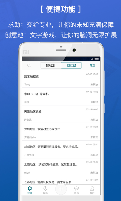 會E人app,今后還將上線其他的功能:o2o,培訓(xùn),教學(xué),授課,供應(yīng),項目承接,循環(huán)合作,文化交流,社交等,為大家提供相應(yīng)平臺服務(wù)如指南,市場,數(shù)據(jù),等服務(wù),做一個新穎創(chuàng)新的渠道,我們的目標(biāo):傳遞經(jīng)驗,聚力改變!