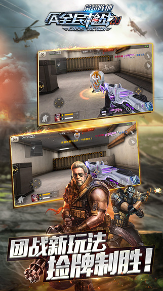 《全民槍戰(zhàn)2.0-赫赫有名》是首款5V5公平競技超人氣FPS手游。逼真的畫面、勁爆的效果、爽快的戰(zhàn)斗,為你還原最真實(shí)的槍戰(zhàn)戰(zhàn)場;爆破模式,躲貓貓,失重模式,大頭模式及幽靈爆破、生化陣地,娛樂排位等多種玩法讓你的槍戰(zhàn)不單調(diào)!超炫的槍支設(shè)計(jì),豐富的槍支種類,精準(zhǔn)的傷害計(jì)算,炎龍換皮膚,分期買武器等貼心功能全新上線,讓你體驗(yàn)最貼心槍戰(zhàn)游戲; 2016全新賽季等你與兄弟們殺出重圍,奪超高額賽事獎(jiǎng)金!還等什么?來戰(zhàn)!【游戲特色】