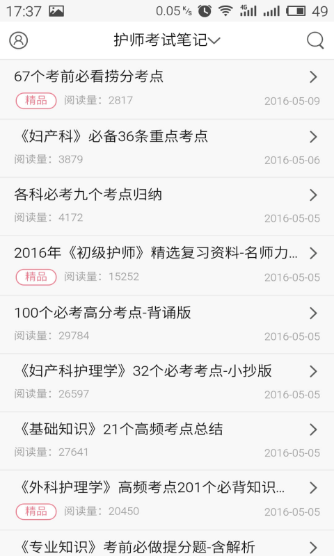 護(hù)士考試筆記是一款專門幫助護(hù)士、初級(jí)護(hù)師、中級(jí)主管護(hù)師、護(hù)士三基等護(hù)理考試考生準(zhǔn)備的學(xué)霸考點(diǎn)筆記,包括歷年必考的,高頻的,易混淆的知識(shí)點(diǎn)、各種名師預(yù)測(cè)、以往高分試題解析、病例歸納等等。全部精心總結(jié)的資料只為幫您更輕松更省時(shí)備考。所有資料全部分享免費(fèi),考試必備。另外護(hù)士考試筆記APP清爽簡(jiǎn)潔的界面設(shè)計(jì),只為給您帶來舒適順暢的閱讀體驗(yàn)。