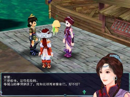 之后,景天醒來,原來景天和雪見皆被救至長卿和紫萱的船上,長卿會授予蜀山的基本心法給景天,讓他不會常常暈倒.事后在船上和各人聊天之后,再到船頭,便會進(jìn)入船.長江.經(jīng)過船.長江,到達(dá)城鎮(zhèn)后,眾人分散各處去采買東西,在藥草店附近的民居后方不遠(yuǎn)處會發(fā)現(xiàn)長卿與鏢頭對話,對話完后可回到船上.