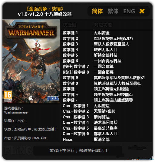 數(shù)字鍵1-無(wú)限資金數(shù)字鍵2-軍隊(duì)&英雄無(wú)限移動(dòng)力