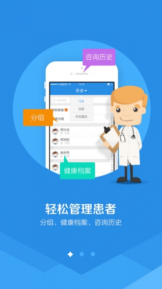 2.患者管理:提供對(duì)患者的列表及分組管理,輕松查看患者健康檔案及康復(fù)情況,隨時(shí)追蹤患者病情發(fā)展;