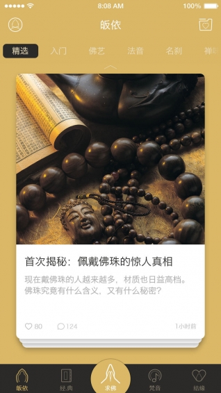 皈依包含七個板塊,包含佛教各位大師思想,古今今外大師的生平事跡,以及法會和新聞,經(jīng)典和梵音欄目中包含所有經(jīng)文,佛教音樂,可收藏也可分享至朋友圈