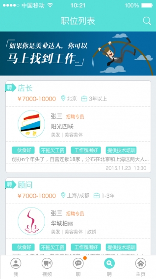 美業(yè)直聘給美業(yè)達(dá)人一個(gè)避開中介直接與老板溝通的機(jī)會(huì)。