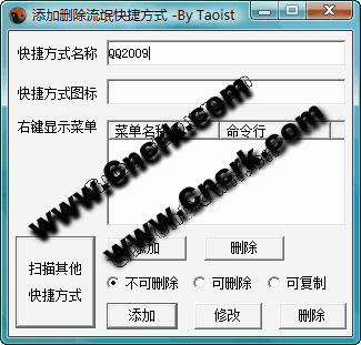 能夠添加流氓快捷方式(桌面不能刪除的快捷方式),也可以掃描已經(jīng)存在的快捷方式,并可以選擇性的刪除。