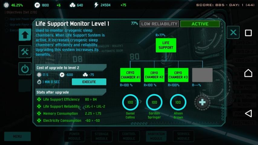 《類星體一號(hào)(Quaser One)》是一款科幻資源管理的游戲!我們九年前就開始了旅程,但是在終點(diǎn)發(fā)生了問(wèn)題。在準(zhǔn)備之后,我們向類星體進(jìn)發(fā)。眼瞅著還有40多天就能到達(dá)了,飛船出現(xiàn)了許多問(wèn)題,“安”將我喚醒,解決這些問(wèn)題。電力修復(fù),控制系統(tǒng),生命所必須的資源,需要我們每時(shí)每刻都要注意,我們還能活著完成這個(gè)任務(wù)嗎?