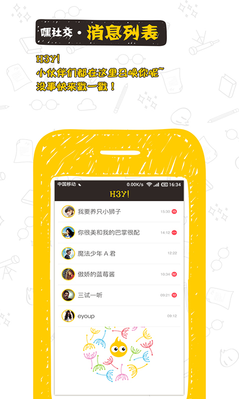 在社交軟件百花齊放的年代,這一款00后自創(chuàng)的聊天軟件一定能驚艷你的雙眼,H3Y!是一支充滿活力的團隊!產品的名字誕生于團隊里12歲的小成員Alan的一次奇思妙想,因為00后喜歡對每一件新鮮事笑著說一句:HEY!【軟件特點】