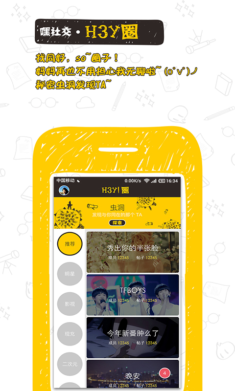 【圈】迅速幫你找到心頭好~!大家一起飯愛豆萌二次元討論所有愛聊的!逮住一個好朋友就要馬上開始聊聊聊才不負人生呀~更何況H3Y!的聊天方式這么特別,更適合發(fā)展同好情誼呀