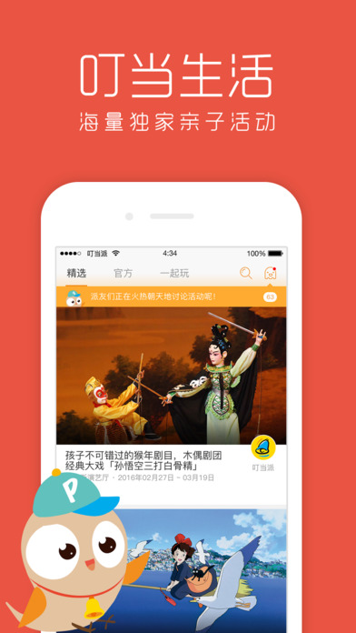 品質(zhì)活動(dòng):叮當(dāng)派為大家尋找、篩選眾多高品質(zhì)獨(dú)家活動(dòng),讓孩子釋放天性,家人共度溫馨親子時(shí)光。藝術(shù)展覽、兒童劇院、自然博物館、橄欖球、沙畫、非洲鼓、暴走徒步、親子跑團(tuán)、牙醫(yī)、烘焙等,總有一類活動(dòng)能讓你和孩子樂享周末。興趣社群:國際范兒的家庭社交平臺(tái),這里聚集了眾多才華橫溢的父母達(dá)人,大家有范兒又好玩,互通海量教育干貨。在這里你可以發(fā)揮自己的特長和興趣,現(xiàn)已有超過100位家庭達(dá)人進(jìn)駐。
