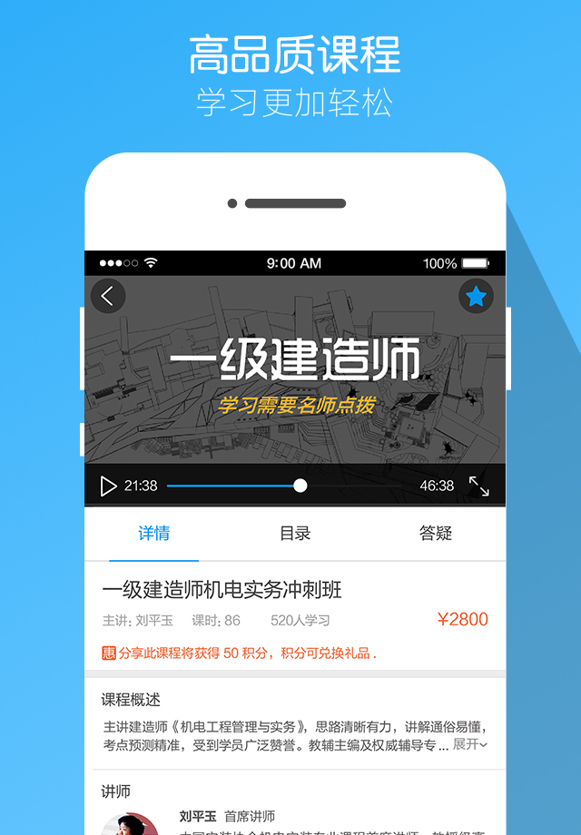 1、優(yōu)質(zhì)課程:建筑職業(yè)教育權(quán)威專家,結(jié)合行業(yè)精英考試經(jīng)驗,保證視頻課程的教學(xué)質(zhì)量,隨時隨地都能看到名師的好課;2、在線問答:用戶可根據(jù)觀看視頻,提出相關(guān)問題,也可為有問題同學(xué)進(jìn)行解答、互幫互助、分享知識;