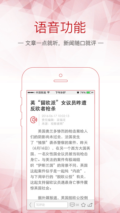 觀察者網(wǎng)app是ios平臺上一款便捷實(shí)用的新聞閱讀類手機(jī)應(yīng)用。它由觀察者網(wǎng)官方推出,旨在為廣大用戶提供最理性客觀的新聞資訊,用戶可以在這里可以了解國內(nèi)外熱點(diǎn)時(shí)事。