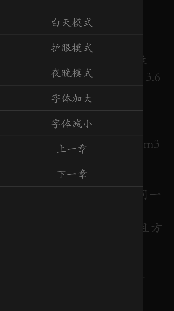 閱讀界面有側(cè)滑欄,只需按住屏幕向右滑,可以更改字體大小,更改閱讀主題顏色,跳轉(zhuǎn)章節(jié)。