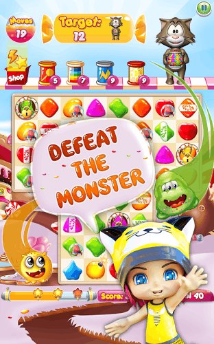 美味的比賽3益智游戲與可愛的人物和有趣的冒險的美味的土地!幫助艾瑪收集果凍,并通過許多粘性的土地享受香甜的月餅,但要小心的怪物!他們盡量吃的食物和決策的障礙,所以艾瑪-喬利蟹必須擊敗的怪物,使土地成為真正的仙境!有了令人難以置信的圖形,新角色和挑戰(zhàn)的冒險,甜仙境是一個比賽3場比賽,這將使你的一天充滿歡樂!