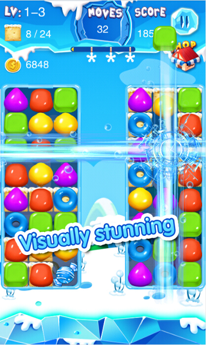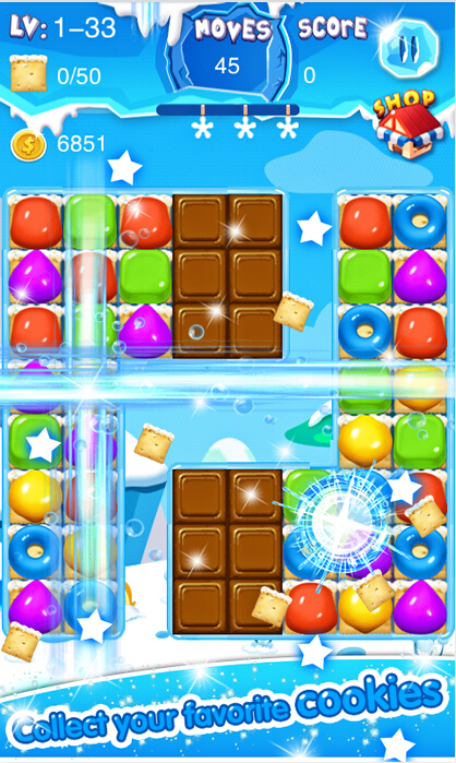 餅干瘋狂是一款休閑消除類游戲,采用經(jīng)典的三消玩法,玩家在游戲中要通過手指滑動屏幕,將三個或三個以上顏色相同的餅干相連即可達成消除,每個關(guān)卡都有固定的分數(shù),只有達到條件才能成功過關(guān)。
