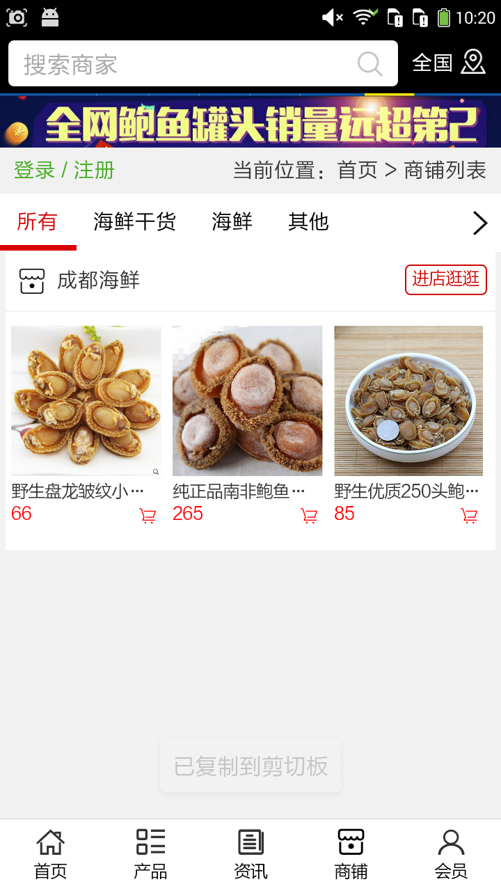 成都海鮮app不僅具備購(gòu)物、查詢訂單、搜索商品、行業(yè)資訊和產(chǎn)品評(píng)價(jià)等常用功能,而且還實(shí)現(xiàn)了手機(jī)版特有的會(huì)員注冊(cè)登錄、廣告位、招商開(kāi)店等功能。目標(biāo)是整合當(dāng)?shù)仄放粕?、生產(chǎn)商、經(jīng)銷商,為商家和消費(fèi)者之間提供一站式解決案。歡迎下載使用!