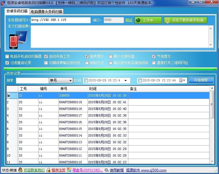 安卓手機也可以當作掃描槍啦!一維碼,二維碼統(tǒng)統(tǒng)搞定。 只要你的安卓手機能和電腦連接,就像掃描槍一樣的效果,還支持當下流行的二維碼識別,方便快捷。 本軟件還支持攝像頭進行一維碼,二維碼識別,沒有安卓手機。攝像頭也可以和掃描槍一樣效果。 原理:只要在安卓手機上安裝一個手機(沒有安卓手機使用電腦攝像頭也行),在您電腦上安裝一個軟件。就能將手機或攝像頭掃描到的條碼數(shù)據(jù)發(fā)給電腦。像掃描槍一樣。方便快捷。