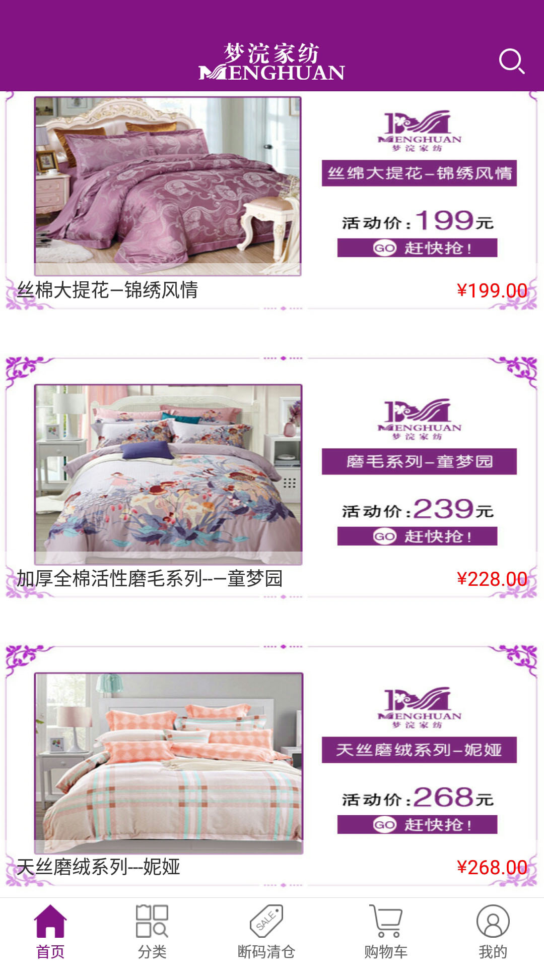 夢(mèng)浣家紡app—專(zhuān)業(yè)的互聯(lián)網(wǎng)家紡供應(yīng)鏈,專(zhuān)注于為各類(lèi)家紡批發(fā)商,零售商,禮品公司等提供高性?xún)r(jià)比的床上用品。夢(mèng)浣家紡隸屬于南通康福特紡織集團(tuán),公司是一家集胚布生產(chǎn),印染,家用紡織品研發(fā),設(shè)計(jì),生產(chǎn),銷(xiāo)售一條龍服務(wù)的新型企業(yè),同時(shí)也是國(guó)內(nèi)多家知名品牌家紡的面料供應(yīng)商,公司堅(jiān)持家紡文化內(nèi)涵與外延的完美組合,尊重居家生活與睡眠的科學(xué)性、舒適性、實(shí)用性、美觀(guān)性的統(tǒng)一,推崇生命與保健、綠色與環(huán)保的市場(chǎng)需求原則。堅(jiān)持高標(biāo)準(zhǔn)的選料,以精益求精的工藝和獨(dú)特的設(shè)計(jì)理念,融合東西方文化與藝術(shù)的精髓,將款式、面料、色彩、圖案等元素有機(jī)的融入家紡用品的設(shè)計(jì)中,打造出以時(shí)尚、健康為鮮明特色的經(jīng)典名品。