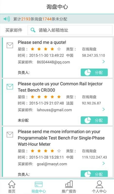 詢盤中心:對貿(mào)易通詢盤予以查看,并實施詢盤分配工作。