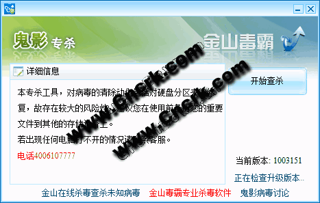 金山鬼影病毒專(zhuān)殺工具: