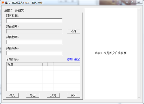 本工具主要包括:單圖文、多圖文兩個工作頁面。