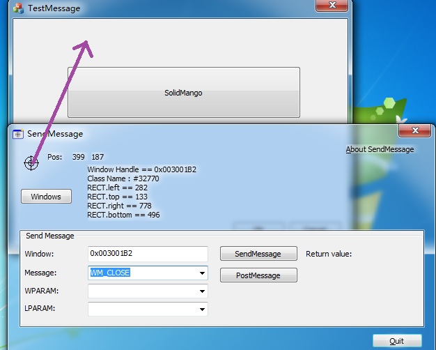 SendMessage是一款Windows消息調(diào)試工具,該函數(shù)將指定的消息發(fā)送到一個或多個窗口。Windows消息調(diào)試工具指定的窗口調(diào)用窗口程序,直到窗口程序處理完消息再返回。而函數(shù)PostMessage不同,將一個消息寄送到一個線程的消息隊列后立即返回。