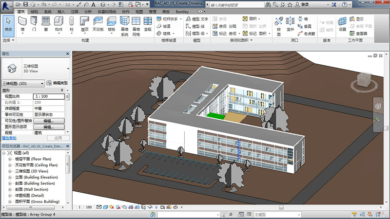 在 Revit 環(huán)境中對施工場地地形進行造型,并將施工場地規(guī)劃概念傳達給工程師。Autodesk Site Designer Extension for Revit (英文) 在 Revit 軟件中運行并使用原生族、組件和地形表面,從而讓場地設(shè)計變?yōu)檎w模型的一部分。您可為體量放坡、建筑地坪、街道、人行道、停車場和擋土墻的備選方案進行建模,所有一切都可在 Revit 環(huán)境中完成。