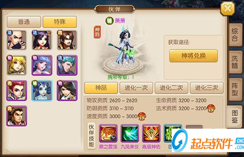 2. 前期不需要購買神將(土豪請無視),兩點原因:等你到后面你會發(fā)現(xiàn),75的寶寶資質(zhì)已經(jīng)和神將差不多了,而且神將真心想買,不花錢半個月就能攢到神將,另外這個游戲主角的戰(zhàn)力很重要,所以小伙伴前期還是推薦修煉主角的戰(zhàn)力,畢竟組隊過副本,伙伴是不參與的;