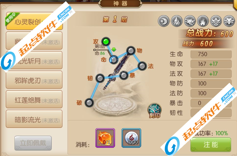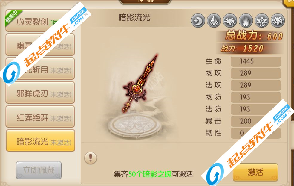 3.流光斬月:該神器可以通過提升VIP等級達(dá)到VIP5即可獲得。