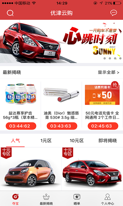 在優(yōu)津云購,你可以參與豐富的眾籌活動,實現(xiàn)自己一元購買熱門潮流商品的愿望。一元奇跡,每時每刻都在發(fā)生哦。我們的理念是:“1元,開啟購物新時代”。【公正透明】