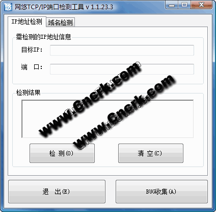 1、下載軟件后,直接運可打開“網悠TCP/IP端口檢測工具”。請確認,您的電腦安裝了.net 2.0環(huán)境,此軟件的運行需要上述環(huán)境;2、本軟件可以通過IP地址+端口的形式,直接檢測;3、本軟件還可以通過域名+端口的形式進行檢測,方便您的使用;4、通過域名+端口的方式進行檢測時,軟件會自動返回域名對應的IP地址