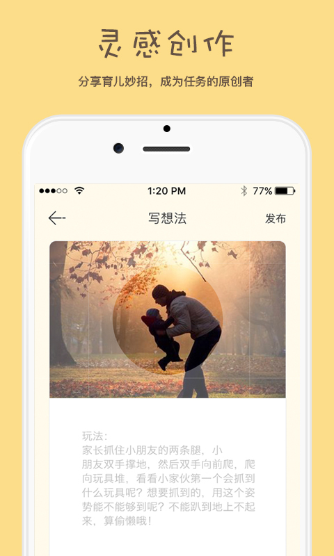 3.靈感變?nèi)蝿?wù)。分享你的育兒妙招,被UpUpapp官方認(rèn)證后還有獎勵拿,成為任務(wù)的原創(chuàng)者!還能獲得其他家長的打賞!
