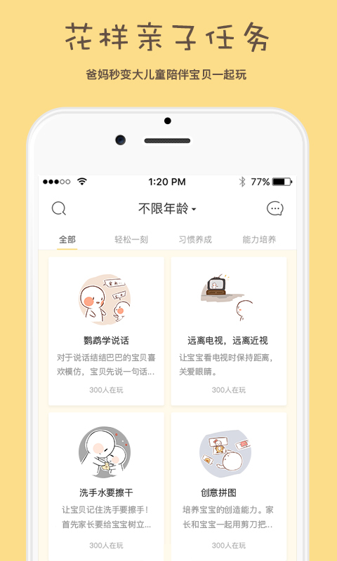 UpUpapp為父母提供適合2-7歲兒童的多種親子互動方式,更有四大任務(wù)模式玩出新花樣!是爸爸媽媽陪伴孩子的實(shí)用幫手!周末哪兒都不去,在家也能像去“迪士尼樂園”一樣有趣,讓父母和孩子共享親子每一刻!【軟件特點(diǎn)】