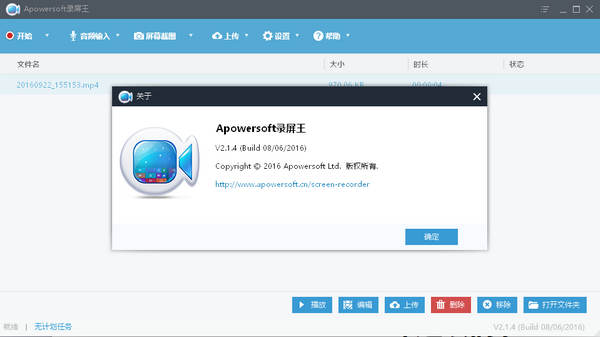 Apowersoft錄屏王是一款專業(yè)的屏幕錄制工具。使用它,您可以輕松地將屏幕上的軟件操作過(guò)程、網(wǎng)絡(luò)教學(xué)課件、網(wǎng)絡(luò)電視、網(wǎng)絡(luò)電影、聊天視頻、游戲等錄制成WMV格式的視頻,還可連接攝像頭進(jìn)行錄像。本軟件錄像時(shí)間不受限,想錄多久就可錄多久。而且,還可自己動(dòng)手制定錄制任務(wù)計(jì)劃,控制錄制時(shí)間。只需開啟錄制,就可自動(dòng)完成計(jì)劃任務(wù)。并保證音頻和視頻的完全同步,且支持各種音視頻格式的轉(zhuǎn)換。AVI、AMV、MKV、MP4、WMV、3GP、FLV、SWF、DVD等格式全部支持,還可支持YouTube、Apple、Android、Sony等音視頻格式。另外,如果您還有其他的視頻想要進(jìn)行格式轉(zhuǎn)換,不用煩惱,Apowersoft錄屏王自帶的視頻轉(zhuǎn)換器就能幫您解決。除此之外,軟件還提供了視頻編輯功能。將視頻添加到轉(zhuǎn)換后,在轉(zhuǎn)換視頻窗口,還能對(duì)視頻進(jìn)行先編輯后轉(zhuǎn)換。
