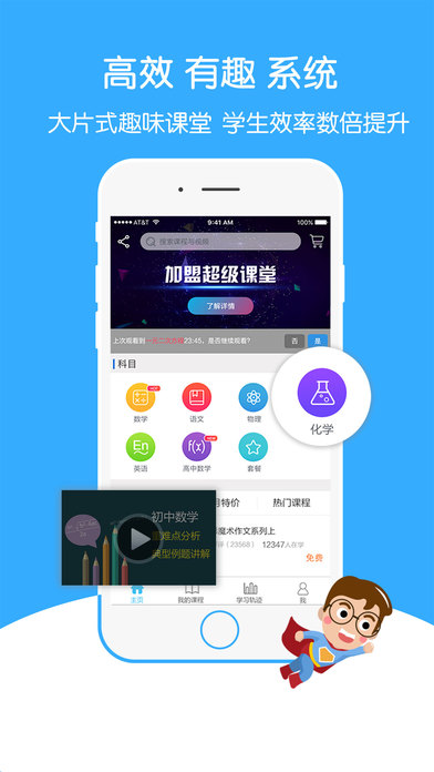 超級(jí)課堂app是全國(guó)首家中小學(xué)全景式大片學(xué)習(xí)平臺(tái)。10分鐘左右的微課,保證學(xué)生的注意力高度集中,學(xué)生不僅可以獲得生動(dòng)傳神的知識(shí)點(diǎn)講解,還能即時(shí)分享知識(shí),結(jié)識(shí)學(xué)習(xí)良伴侶。【軟件特點(diǎn)】