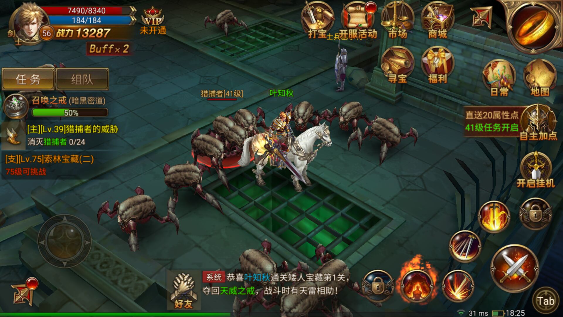 游戲中掛機殺怪和活動給的經(jīng)驗都很豐厚。掛機殺怪分為在線和脫機兩種。在線時,玩家可以主動前往推薦掛機點進行掛機,獲得大量的經(jīng)驗和裝備。脫機時,脫機外掛也會托管玩家前往推薦掛機點進行掛機,讓玩家不需要占用手機屏幕也可以一直掛機。