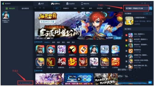 3、安裝游戲,第一種方法是搜索游戲名然后下載,第二種方法是左下角的本地導(dǎo)入。
