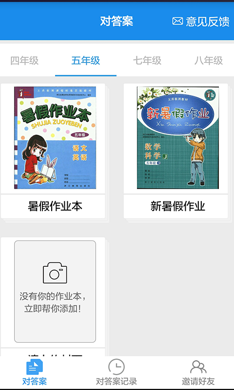 1.首頁(yè)支持3-9年級(jí),每個(gè)年級(jí)4門科目,每個(gè)科目下多本作業(yè)本