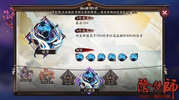 3、陰陽(yáng)寮的突破每個(gè)陰陽(yáng)寮打一次都有10分鐘的冷卻時(shí)間,但是不消耗結(jié)界突破券。