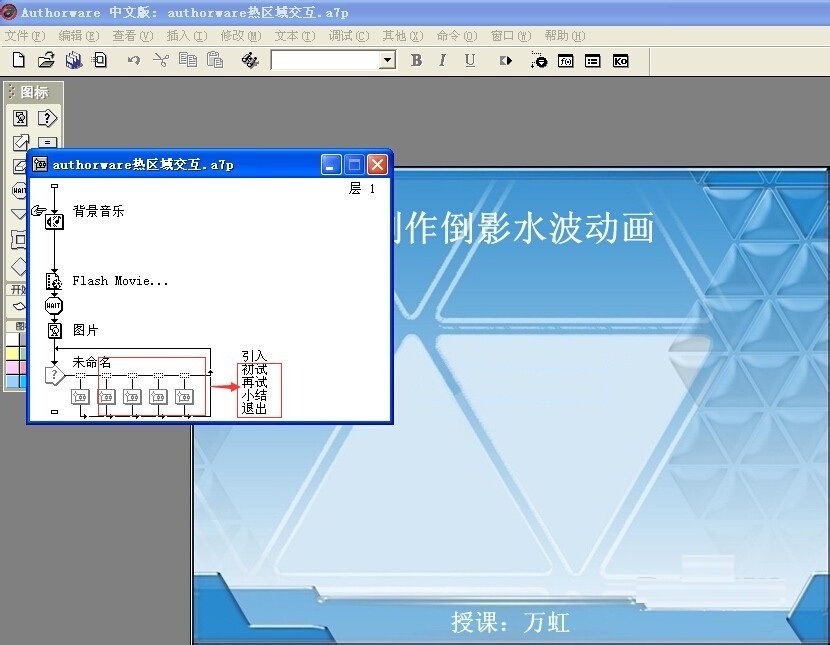 1、打開Authorware軟件,將在前面經(jīng)驗(yàn)里介紹制作的“Authorware圖片聲音動(dòng)畫”打開;