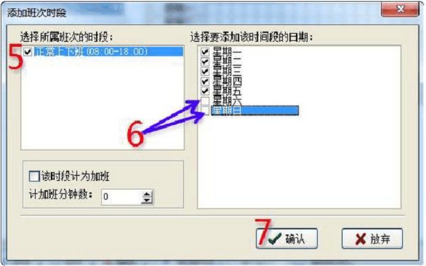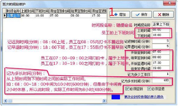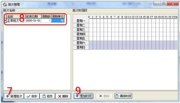 4、設(shè)置班次時(shí)間段(進(jìn)入班次時(shí)間段維護(hù))