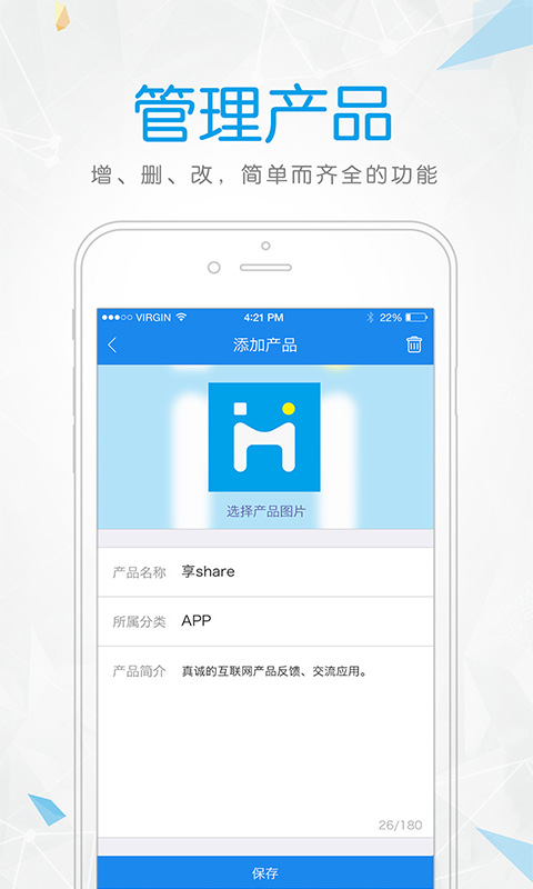 【便捷發(fā)布產(chǎn)品】僅需填寫產(chǎn)品Logo、產(chǎn)品名字、產(chǎn)品簡介,即可發(fā)布產(chǎn)品,向用戶創(chuàng)建一個(gè)反饋入口。