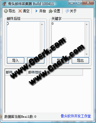 骨頭郵件采集器這款郵件采集器目前只支持百度采集,軟件采用多線程采集,速度快,穩(wěn)定,可以最小化到托盤,可以自動(dòng)優(yōu)化內(nèi)存,如果大家有更多需要,我有時(shí)間會(huì)加入更多搜素引擎的采集