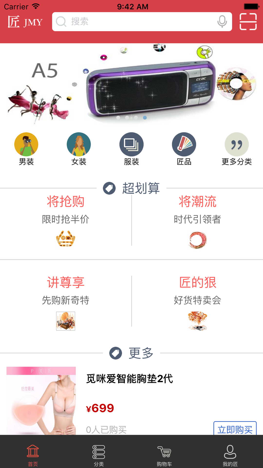 匠邁婭是一款便捷的時(shí)尚購(gòu)物應(yīng)用。該應(yīng)用里擁有海量的商品,智能男裝、智能女裝、智能母嬰產(chǎn)品等,種類齊全,應(yīng)有盡有,讓用戶在手機(jī)上就能購(gòu)買所需產(chǎn)品,暢享智能購(gòu)物體驗(yàn)。