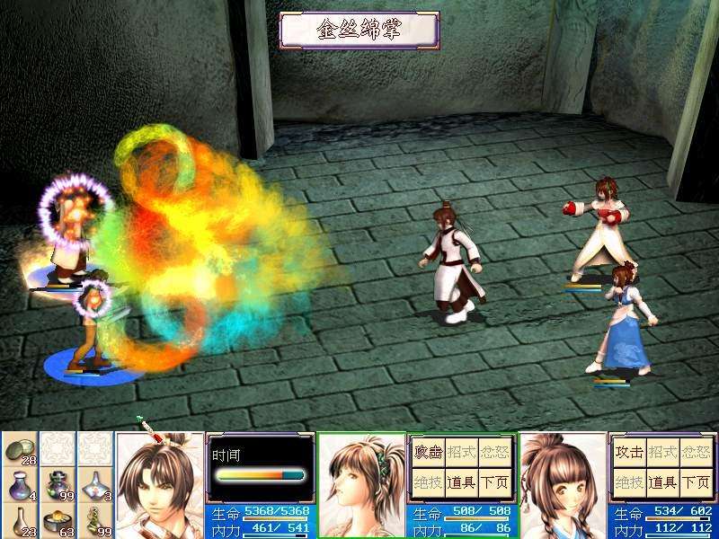 說明:如果你想升級快點(diǎn)的話,不用總是去打白虎,因?yàn)槿绻媒^技打白虎,你就沒有可能拿到白虎像,只有用唯一的攻擊方式一直打下去,就可以得到。如果一次不行,你可以存盤后繼續(xù)打,直到打到為止。升級最快的是去山洞用絕技打人參,一加就加265,這樣升級才會更快些。
