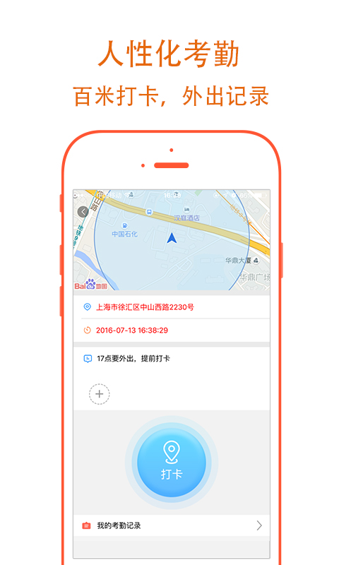 ★外勤管理:外勤人員可以實(shí)時(shí)地圖簽到,工作位置隨時(shí)掌握。