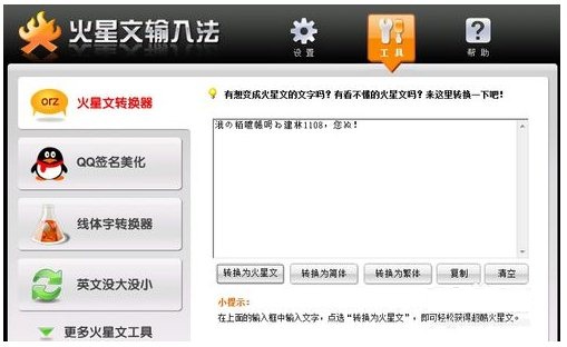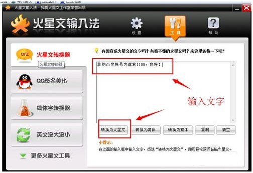 3、在火星文轉(zhuǎn)換器功能中,我們可以輸入文字,然后點(diǎn)轉(zhuǎn)換為火星文,就會出現(xiàn)與眾不同的文字了。在火星文轉(zhuǎn)換器中,我們可以簡體與繁體字互換哦。